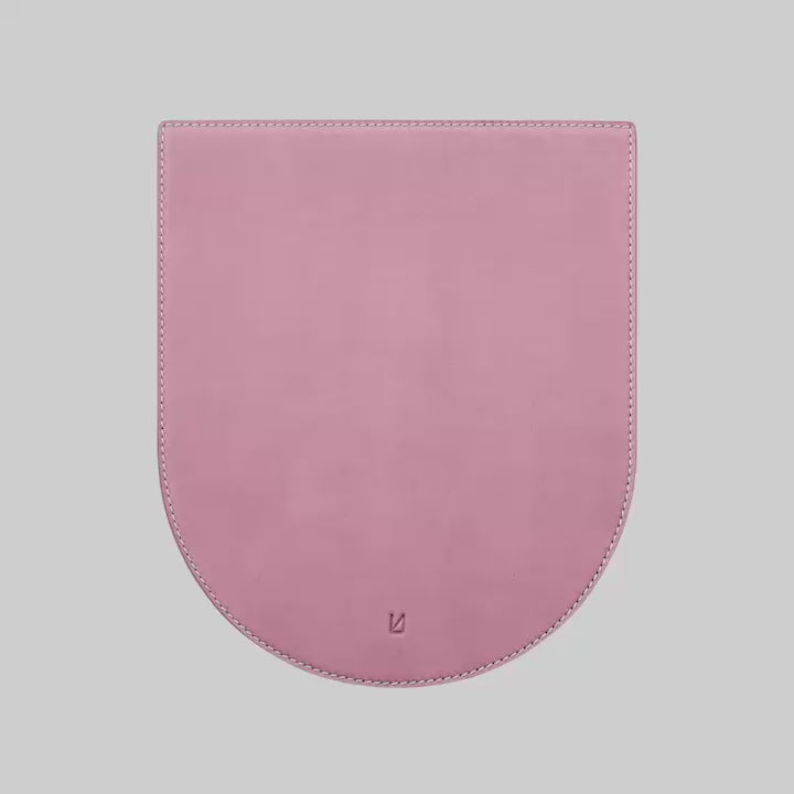 The Podium Pad pink leather desk pad featuring a multi-layered construction adorned with the finest French leather for a smooth, refined touch.