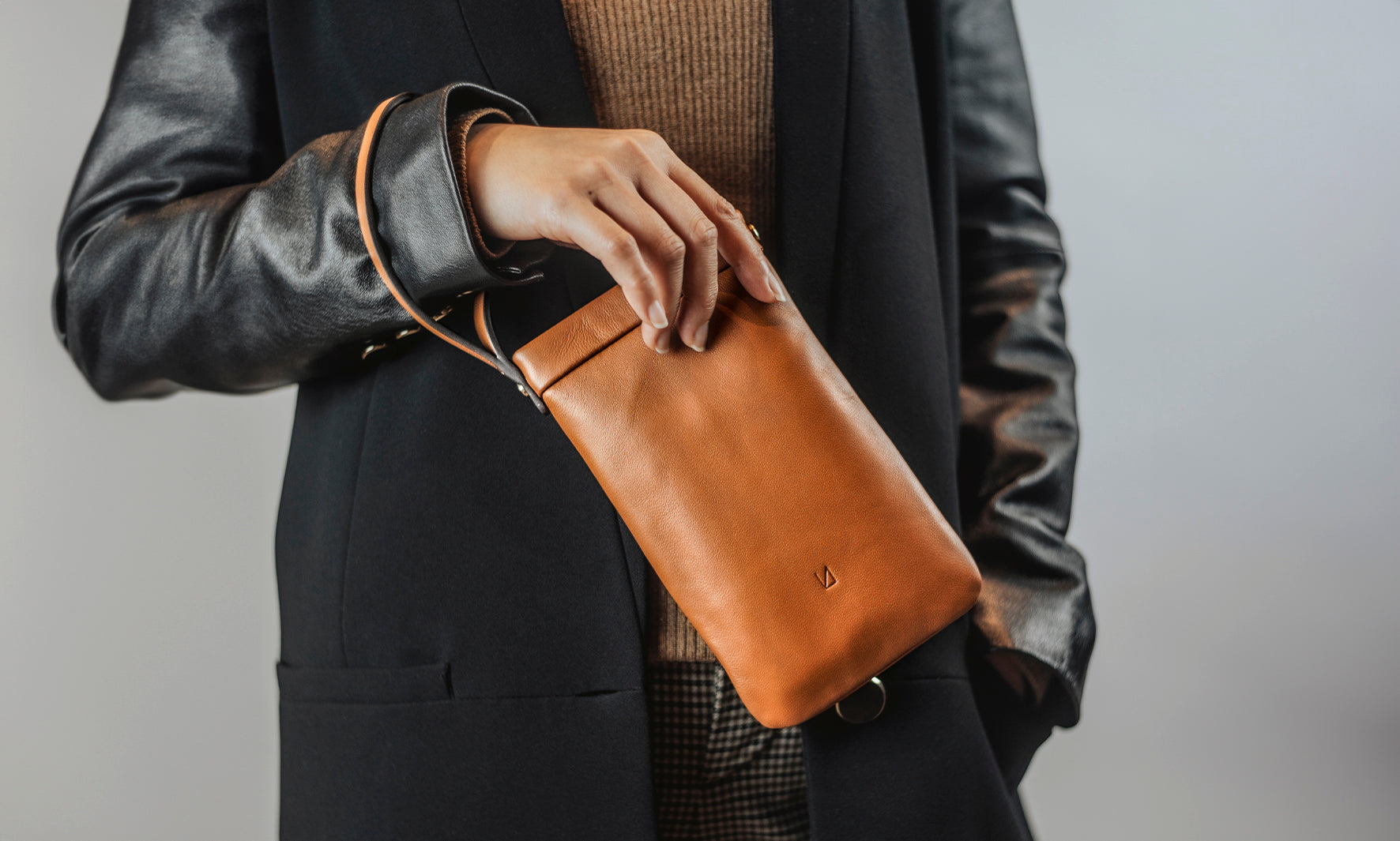 Handcrafted from buttery soft full-grain Italian lambskin, the Pera Pouch combines timeless elegance with practical functionality. Featuring hand-polished brass accents, a secure magnetic closure, and a credit card slot, every detail is carefully considered to ensure durability and style.
