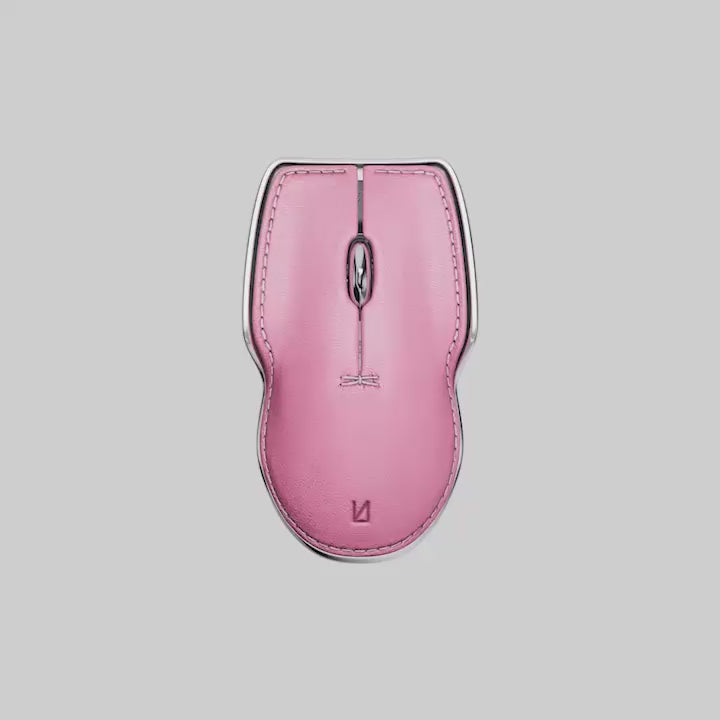 The Pointer Instrument is a hand-assembled, ambidextrous computer mouse featuring full-grain calf leather, equestrian-style stitching and chrome-plated solid aluminium. This elegant pink leather computer mouse is carefully engineered to accommodate future repairs and component replacements for lifelong durability.