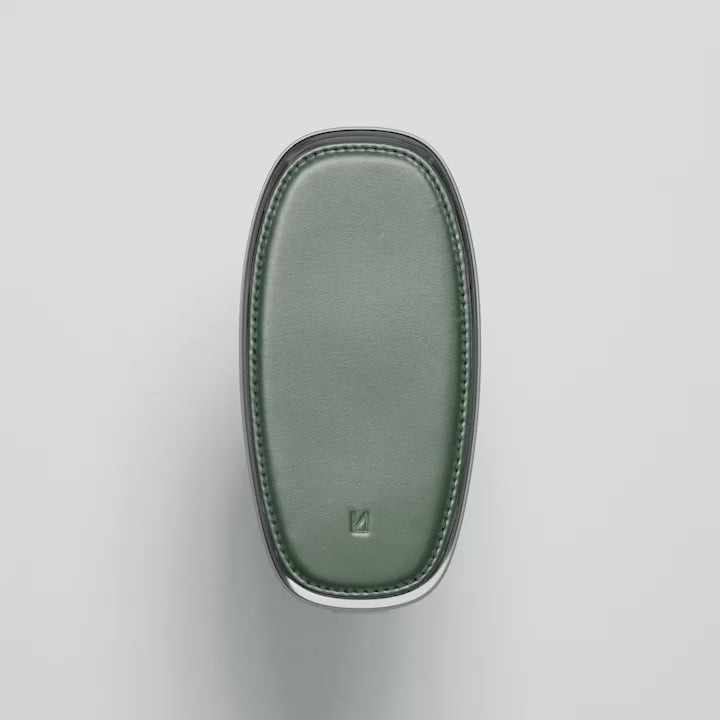 The solid brass base isn’t just beautiful – it’s functional. Naturally dispersing heat during charging, it stays cool under pressure and feels substantial in the hand. Each one is hand-polished, then finished in chrome or gold plating for durability and quiet shine. Up top, full-grain French leather adds texture and tone – sustainably sourced, precision-stitched, and made to endure.