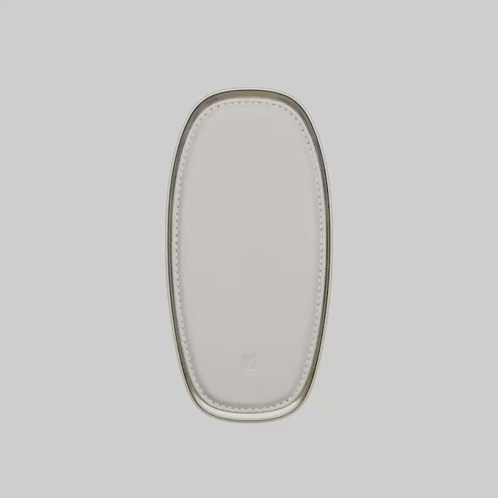 The solid brass base isn’t just beautiful – it’s functional. Naturally dispersing heat during charging, it stays cool under pressure and feels substantial in the hand. Each one is hand-polished, then finished in chrome or gold plating for durability and quiet shine. Up top, full-grain French leather adds texture and tone – sustainably sourced, precision-stitched, and made to endure.