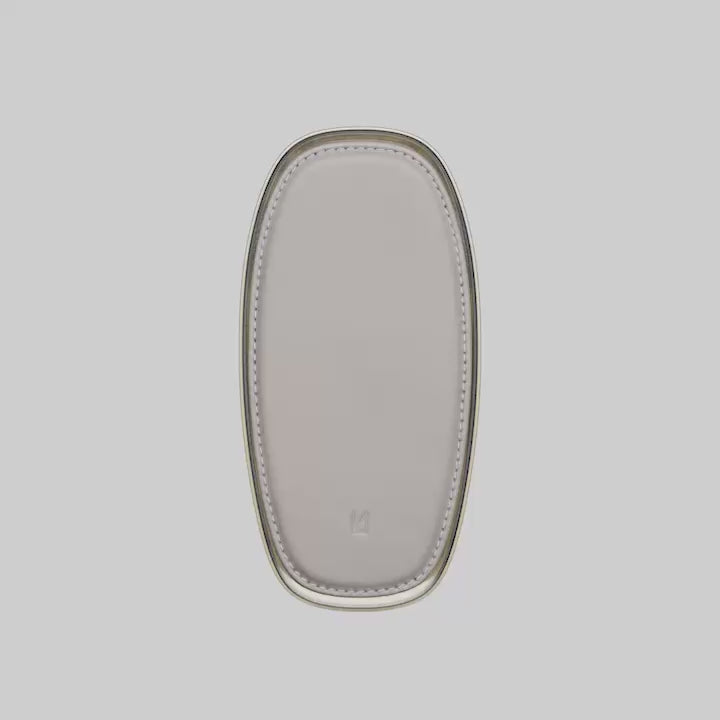 The solid brass base isn’t just beautiful – it’s functional. Naturally dispersing heat during charging, it stays cool under pressure and feels substantial in the hand. Each one is hand-polished, then finished in chrome or gold plating for durability and quiet shine. Up top, full-grain French leather adds texture and tone – sustainably sourced, precision-stitched, and made to endure.