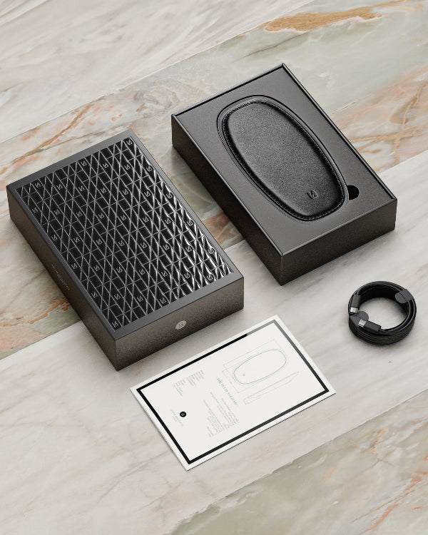 Designed to blend into your life, not your cables. The Pulse Volitari is a wireless charger reimagined – wrapped in sustainably sourced full-grain leather, anchored by a solid brass base, and built to sit as confidently in your living room, bedroom, kitchen or office.