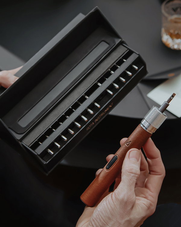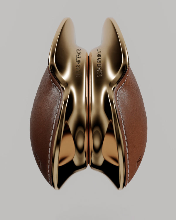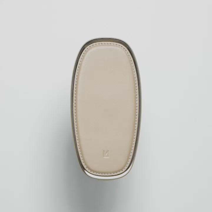 The solid brass base isn’t just beautiful – it’s functional. Naturally dispersing heat during charging, it stays cool under pressure and feels substantial in the hand. Each one is hand-polished, then finished in chrome or gold plating for durability and quiet shine. Up top, full-grain French leather adds texture and tone – sustainably sourced, precision-stitched, and made to endure.
