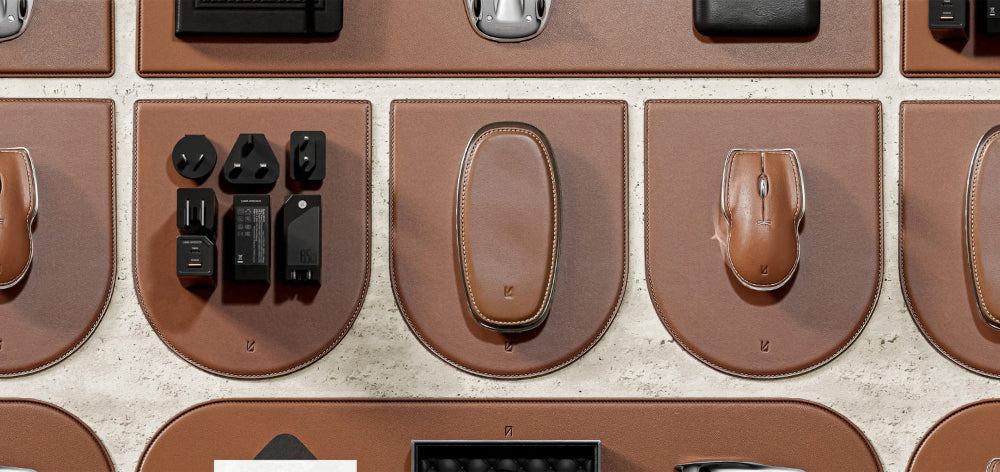 Sustainability and timeless quality form the cornerstone of our design ethos. From the richness of full-grain leather to the lustre of select metals and state-of-the-art electrical components, we scour the globe for the finest suppliers. Each artefact's patina, each scuff, narrates a unique story. Our eco-conscious sugarcane paper packaging and soy ink support our sustainability commitment.